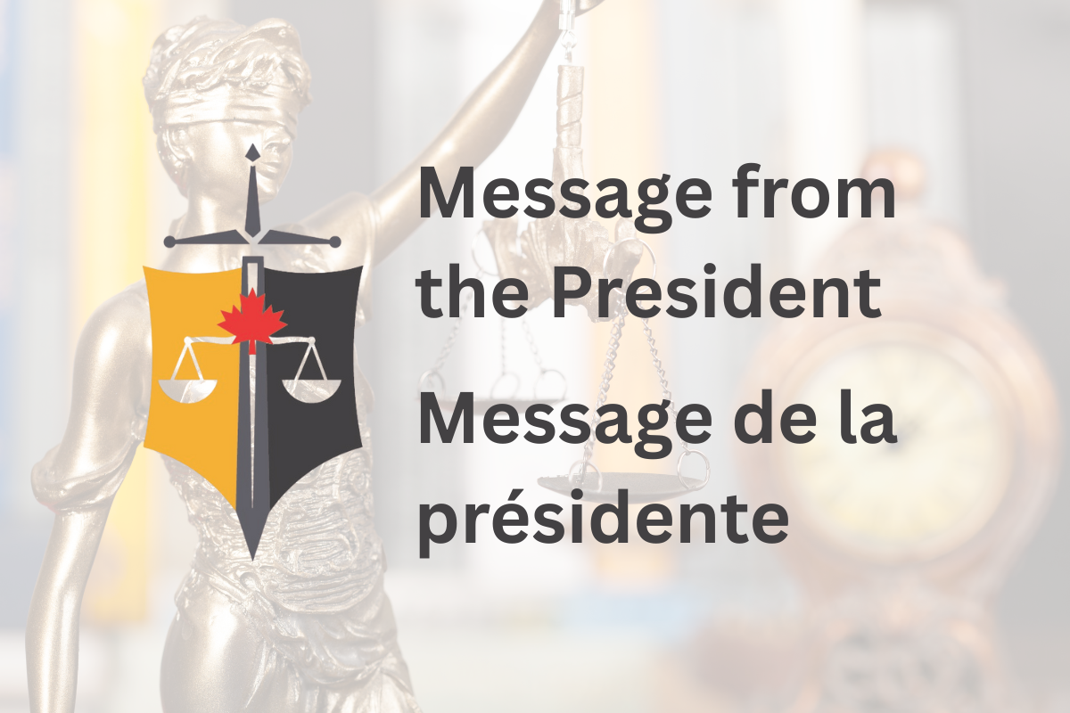 Nous vous rappelons également que notre association s’associe à l’Institut canadien d’administration de la justice (ICAJ) pour organiser une importante conférence bilingue de trois jours, « Démocratie, primauté du droit et indépendance », du 18 au 20 novembre 2025, à Ottawa. Nous vous encourageons à vous inscrire au programme pour poursuivre cette conversation.